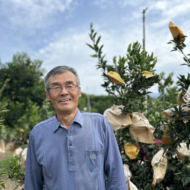 柑橘の名産地・有田で、主に不知火、せとか、はるみ、なつみなどの栽培をしている須佐見一朗さん。ご自身のお名前にちなんで、『イチローデコ』という愛称でお届けしている不知火をはじめ、霜から身を守りながら越冬ができるよう、すべての果実に手作業で袋をかぶせて大切に育てています。そんな防寒用の袋もてづくりなんだとか。そのため数に限りがございますので、ぜひ予約販売をご利用ください♪