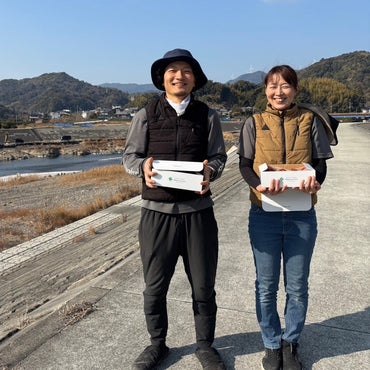 "Cherish your relationship" 『ご縁を大切に』 そんな思いを込め、自然豊かな日高川町でトマトのハウス栽培をしている中村農園さん。元美容師でおしゃれな雰囲気をまとう夫のコウタさんと、元保育士でいつも笑顔、こちらまで明るい気持ちにさせてくれる妻のユカさんご夫婦で、大切にトマトを育てています。ユカさんのお家は代々受け継がれてきた農家さんです。ネットのない時代から、人と人との繋がりを大切にしてきました。効率化により暮らしは豊かになりましたが、ある意味「面倒くさい部分」にこそ幸せがあるんじゃないかな?と考えるコウタさん。「あの人に食べてもらいたい」そう思ってもらえる、人との繋がりを紡ぐような作物作りに日々励んでいます。