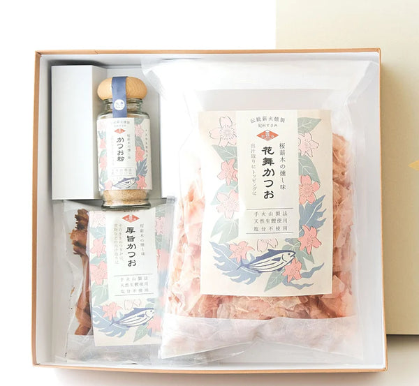 蒸さずに削る!江戸時代から伝わる紀州すさみの伝統薪火燻製「手火山製法」のかつお節2種(花舞・厚旨)とかつお粉セット